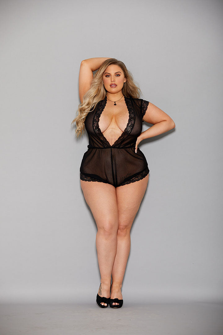 Exquisitely crafted from whisper-light floral mesh and delicate lace, this captivating teddy exudes romance and sophistication with lace-up back detail, side cutouts and adjustable hook and eye crotch closure.